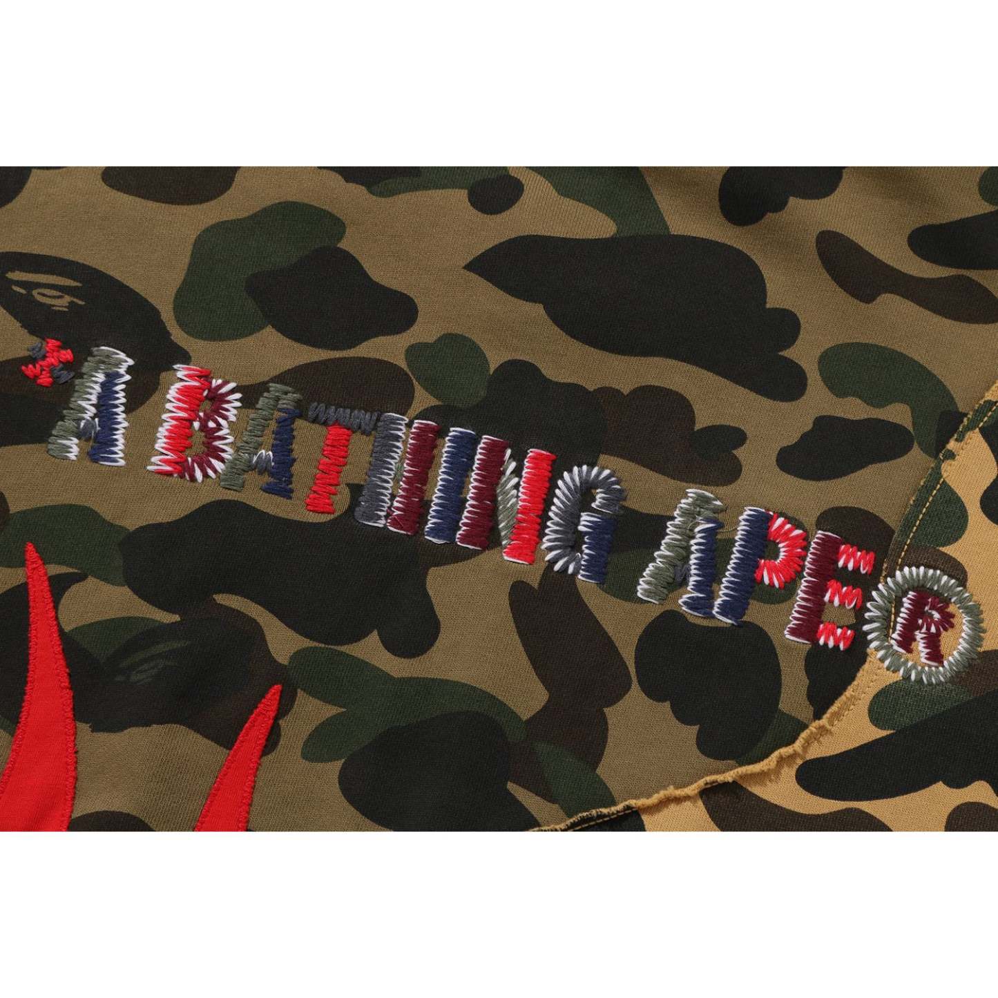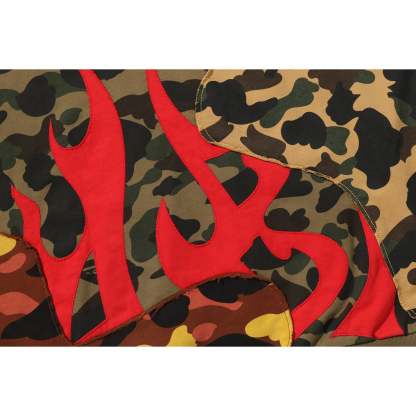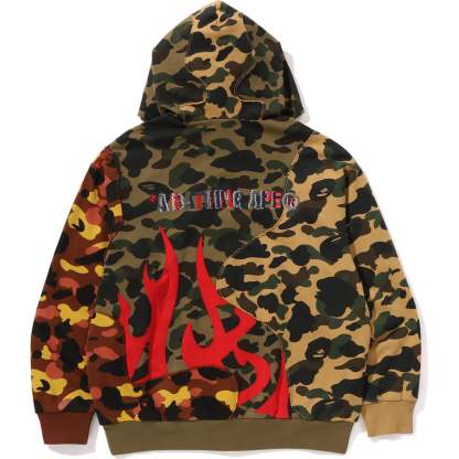 BAPE MENS RELAXED FIT 1ST CAMO UPCYCLED FULL ZIP HOODIE JACKET boldly showcases an embroidered A BATHING APE logo on the back. Crafted from recycled fabrics and repurposed materials, Designed with a loose, comfortable silhouette, it delivers effortless style with an eco-conscious edge.