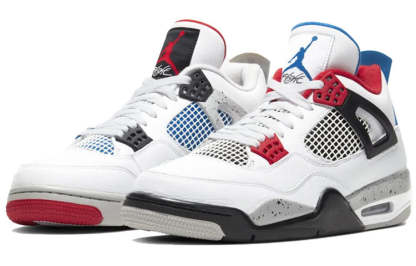 The Nike Air Jordan 4 Retro "What The 4" combines four of the most beloved colors: "Bred", "Military Blue", "Fire Red", and "White Cement". Incorporated into the leather upper are mesh and suede elements, while the classic Air midsole sits underneath to provide you with comfort.