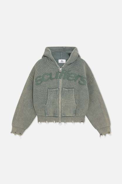 Buzz Dusty Green Knit Zipper