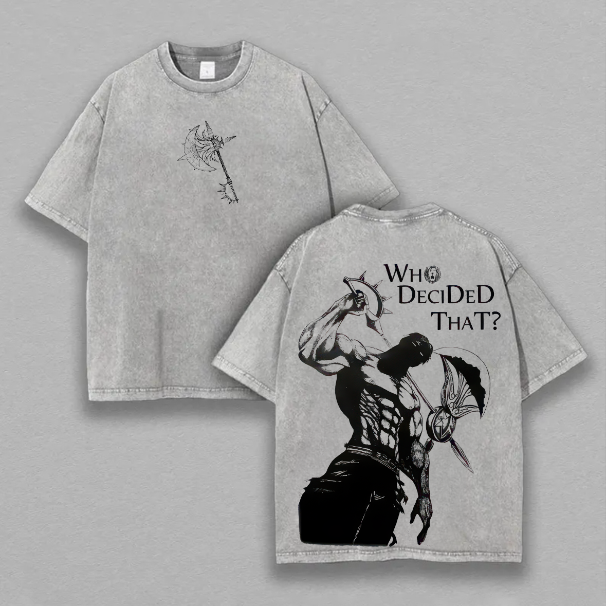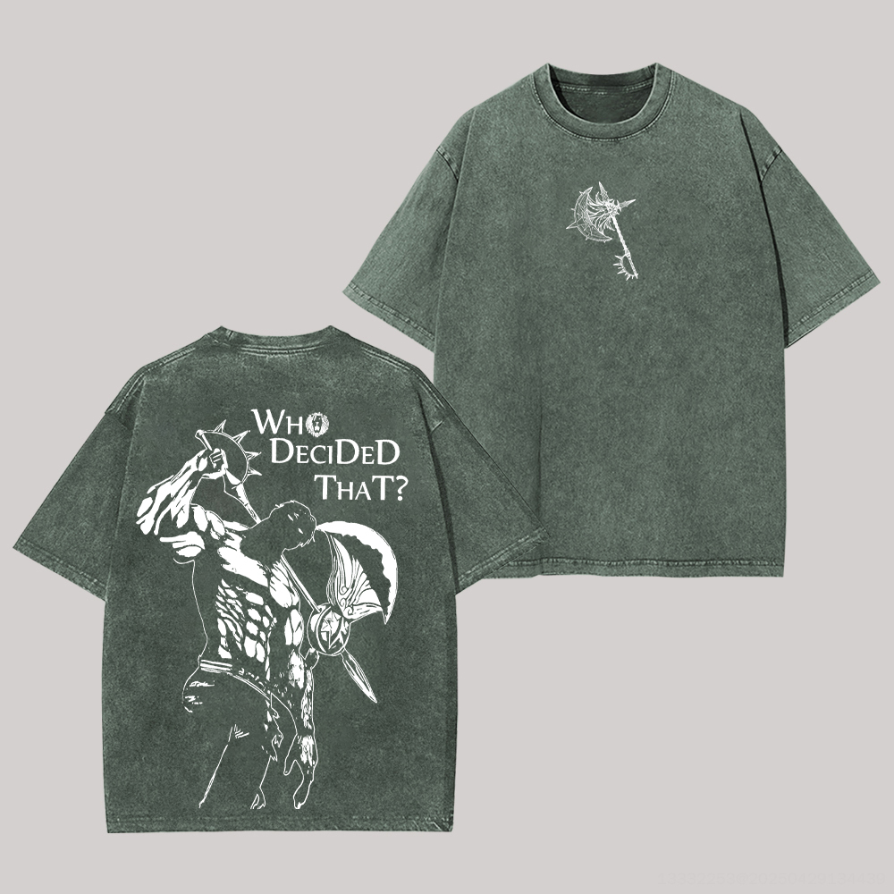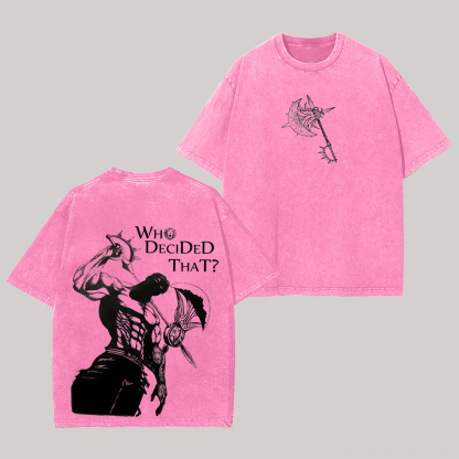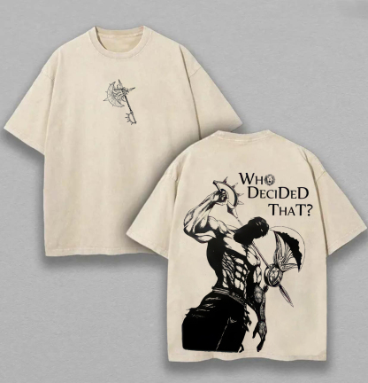 | Product Name | Escanor Who Decided That? Printed Unisex Washed T-Shirt | ||