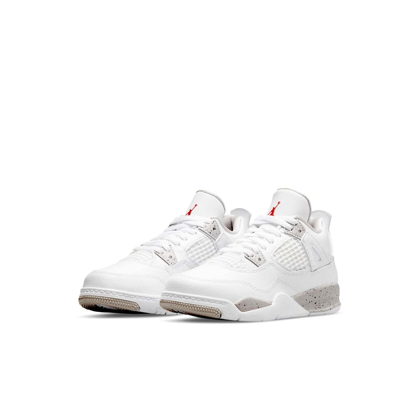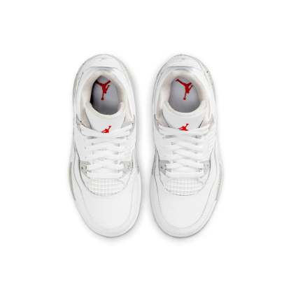 For little kids who want to rock a classic Air Jordan look, the Air Jordan 4 Retro PS ‘White Oreo’ is the perfect sneaker. This cute and trendy shoe features a white leather upper with grey accents on the eyelets, interior lining and speckled foam midsole. The scarlet Jumpman icon on the tongue adds a pop of color to this otherwise neutral-toned shoe.
